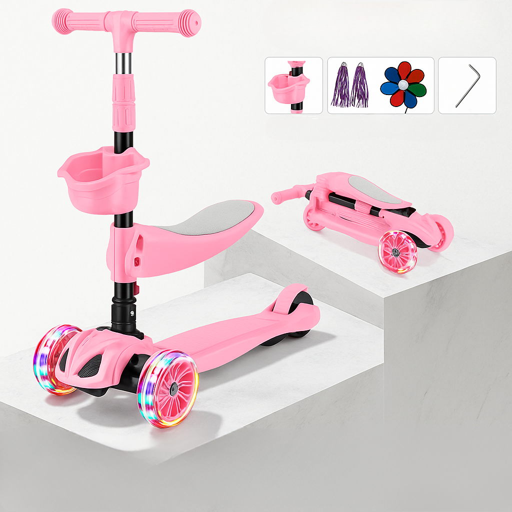 3-i-1 Justerbar Sparkcykel för Barn – Med Säte, LED-hjul & Höjdjusterbart Styre