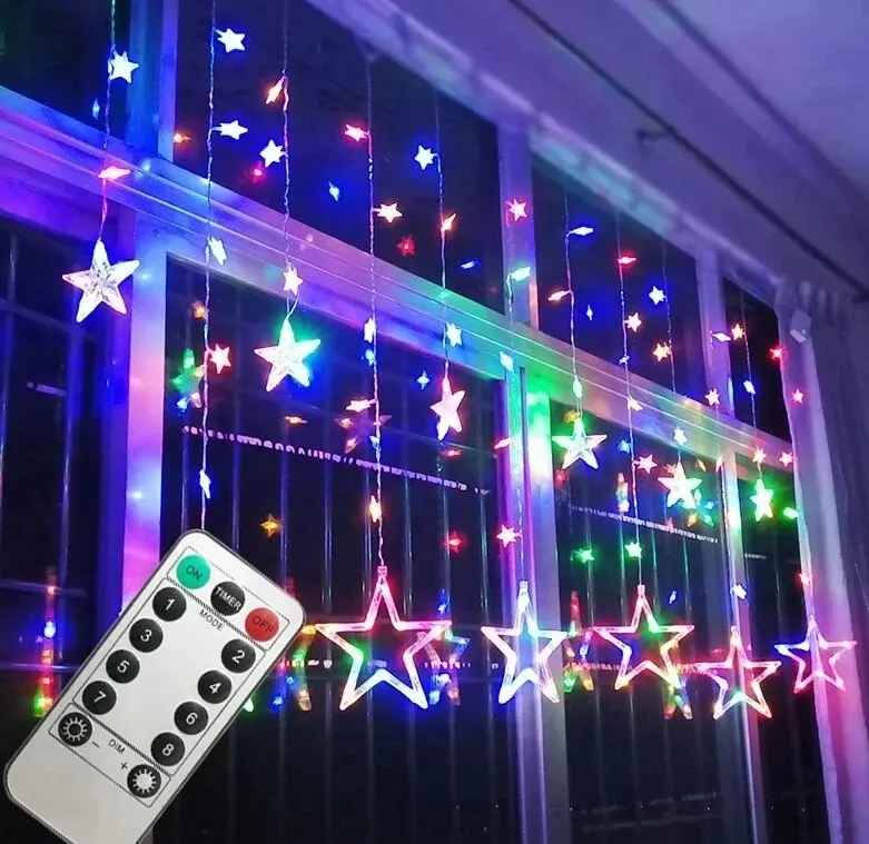 Gardinljusslinga med Stjärnor – 3,5 m, varmvit & flerfärgad