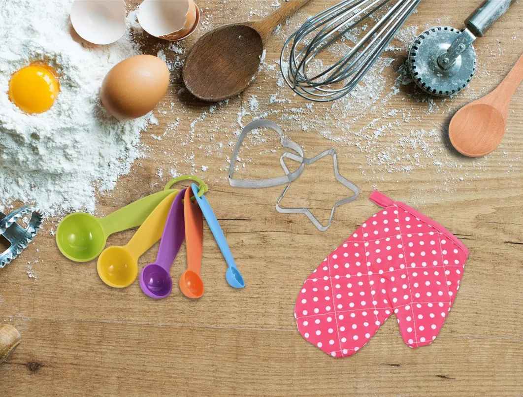 Detta kökstillbehörsset för små kockar är ett utmärkt sätt att introducera barn till matlagning genom lek. Ett roligt och lärorikt tillskott till varje leksakskök och rollspelsleksaker.