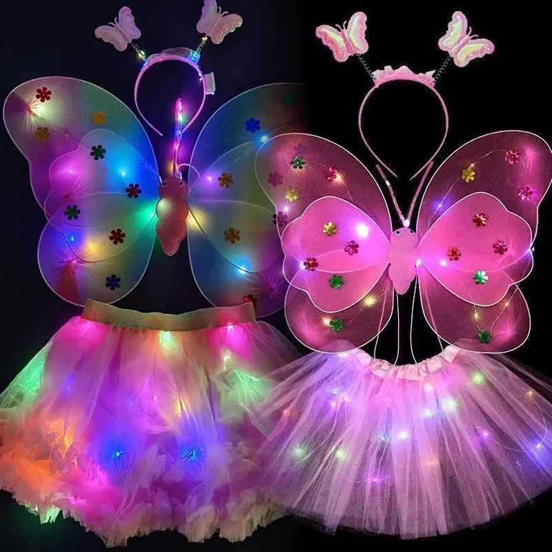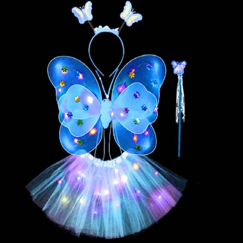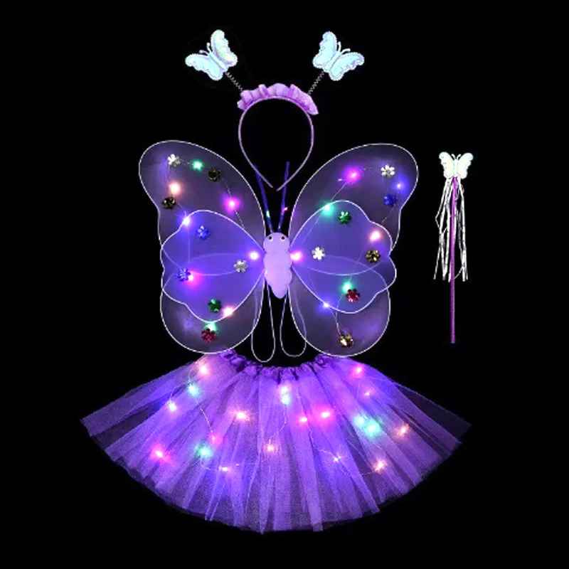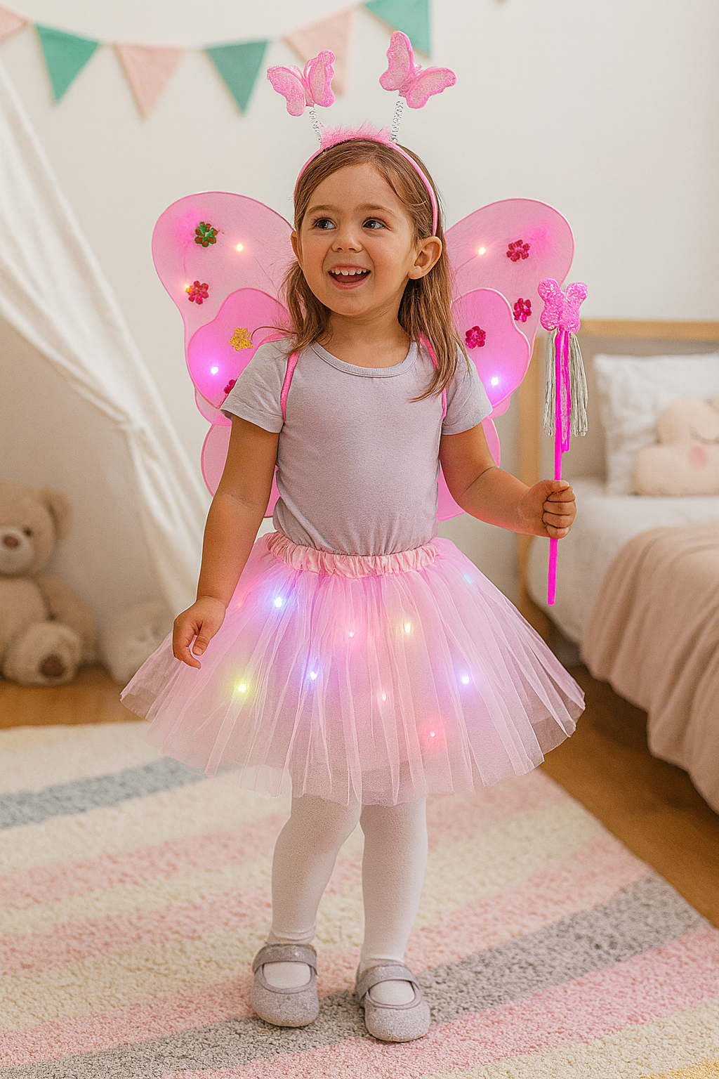 LED Älvset – Tyllkjol, Vingar, Trollspö och Diadem med Ljus