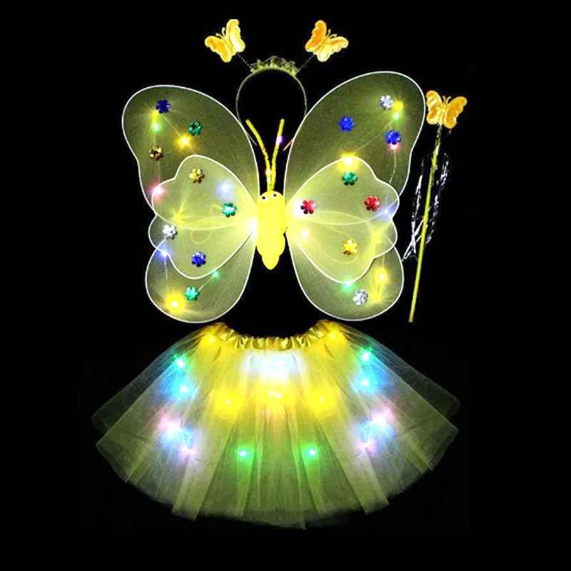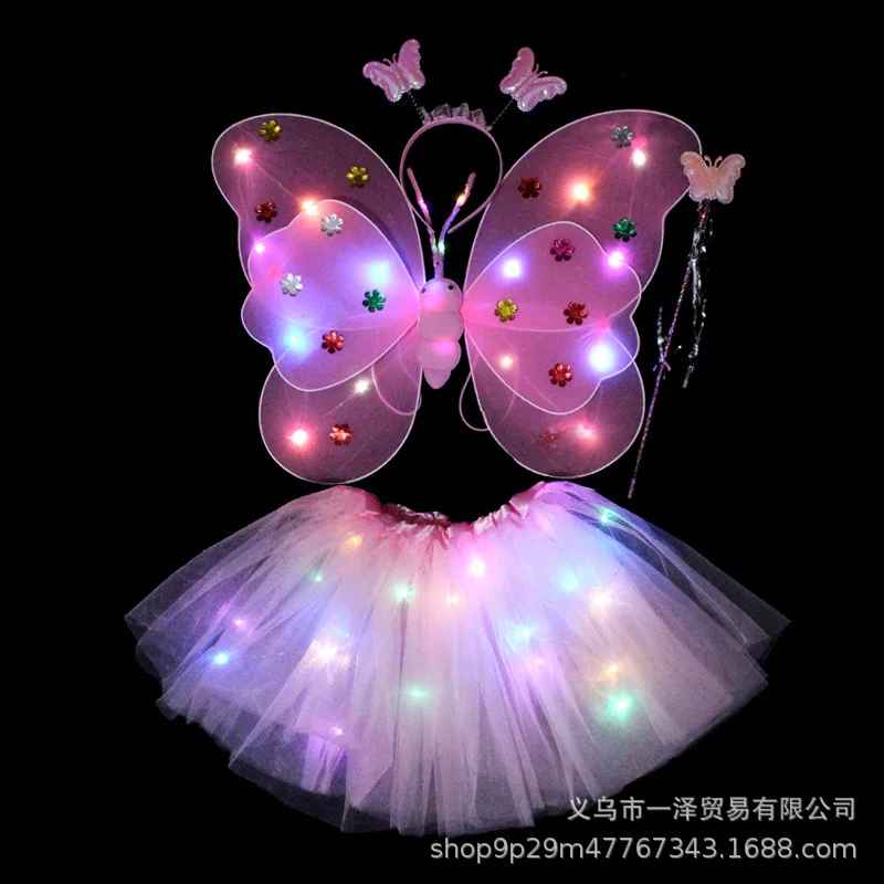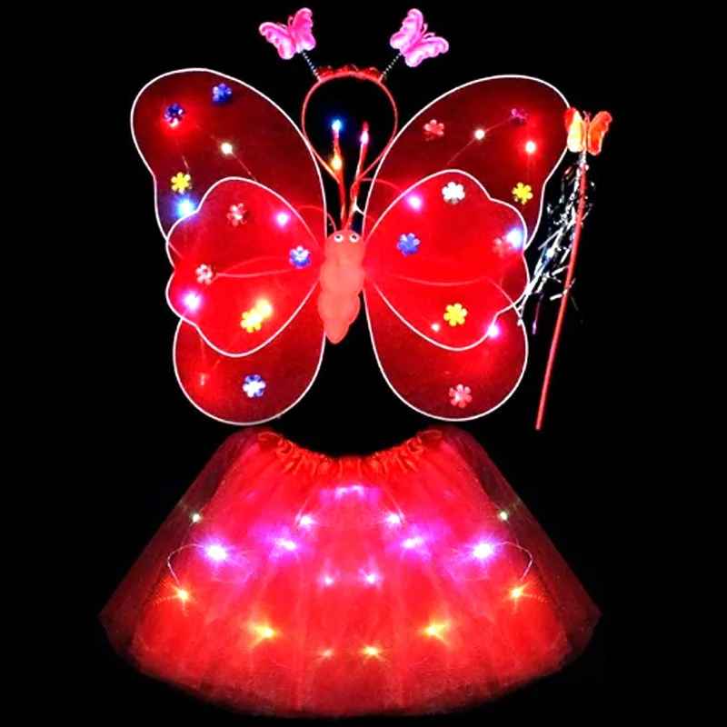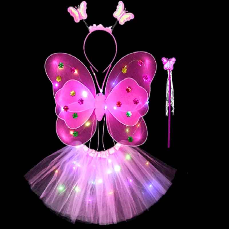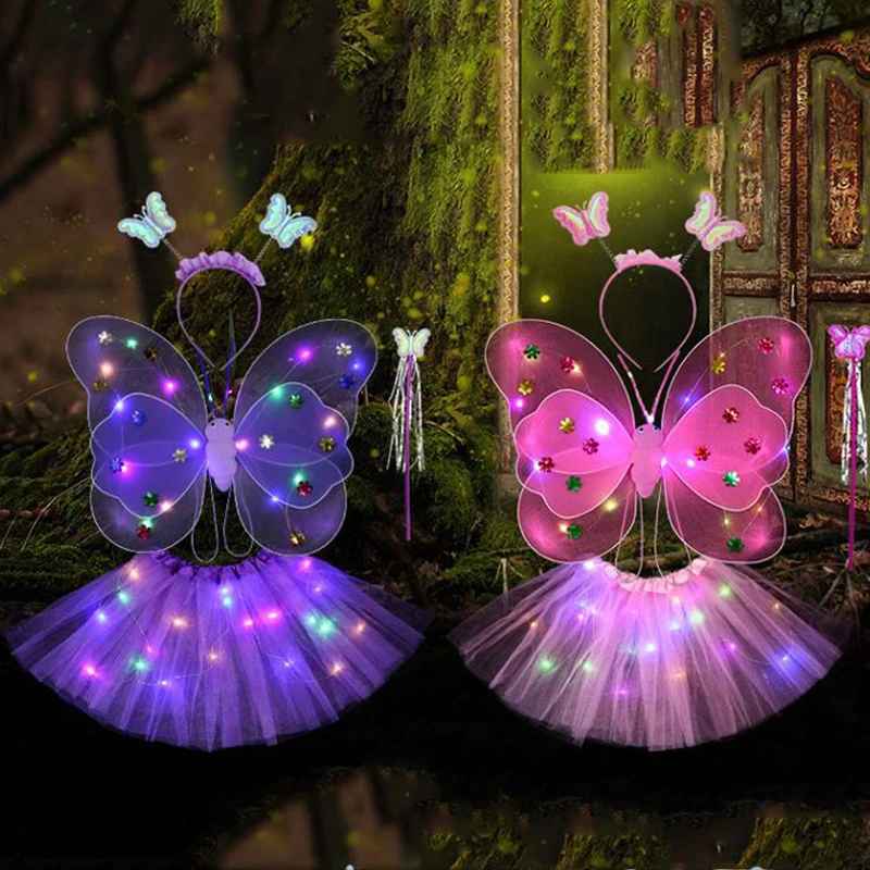 LED Älvset – Tyllkjol, Vingar, Trollspö och Diadem med Ljus
