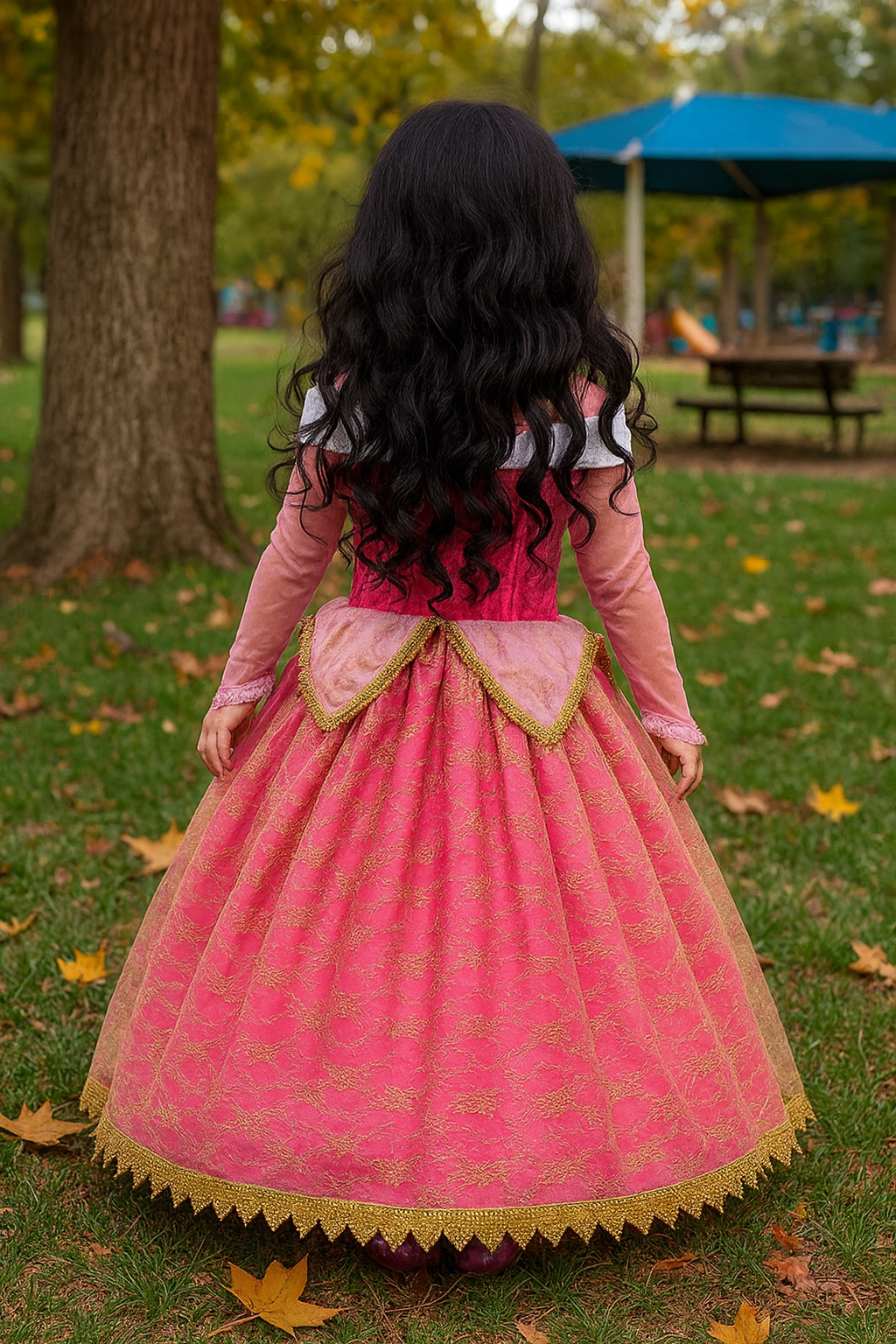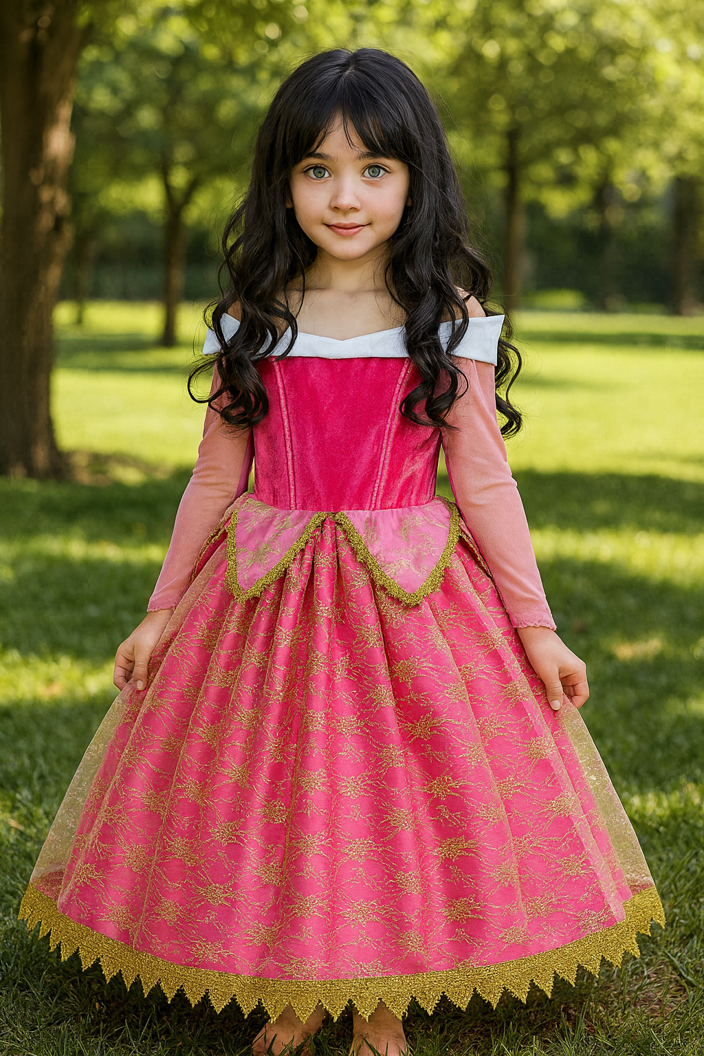 Designen är knälång och har en ledig siluett som ger rörelsefrihet. Klänningen följer normala storlekar och passar barn i åldern 4–8 år. Den levereras med tillbehör för att komplettera helheten och skapa en komplett utklädnadskänsla. Detta är ett idealiskt val för barn som vill klä ut sig, leka rollekar eller bära något extra fint vid speciella tillfällen. Klänningen är framtagen för att användas i både vardag och fest och passar bra i butiker som fokuserar på barnmode, temakläder och lekfulla kollektioner.
