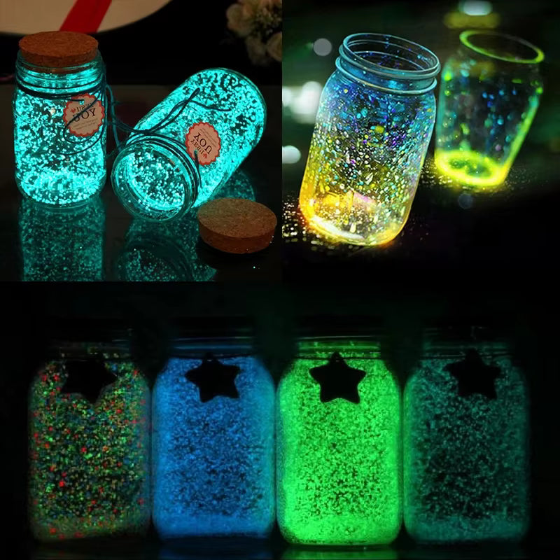 Stenarna absorberar ljus under dagen och lyser sedan svagt i mörkret. -