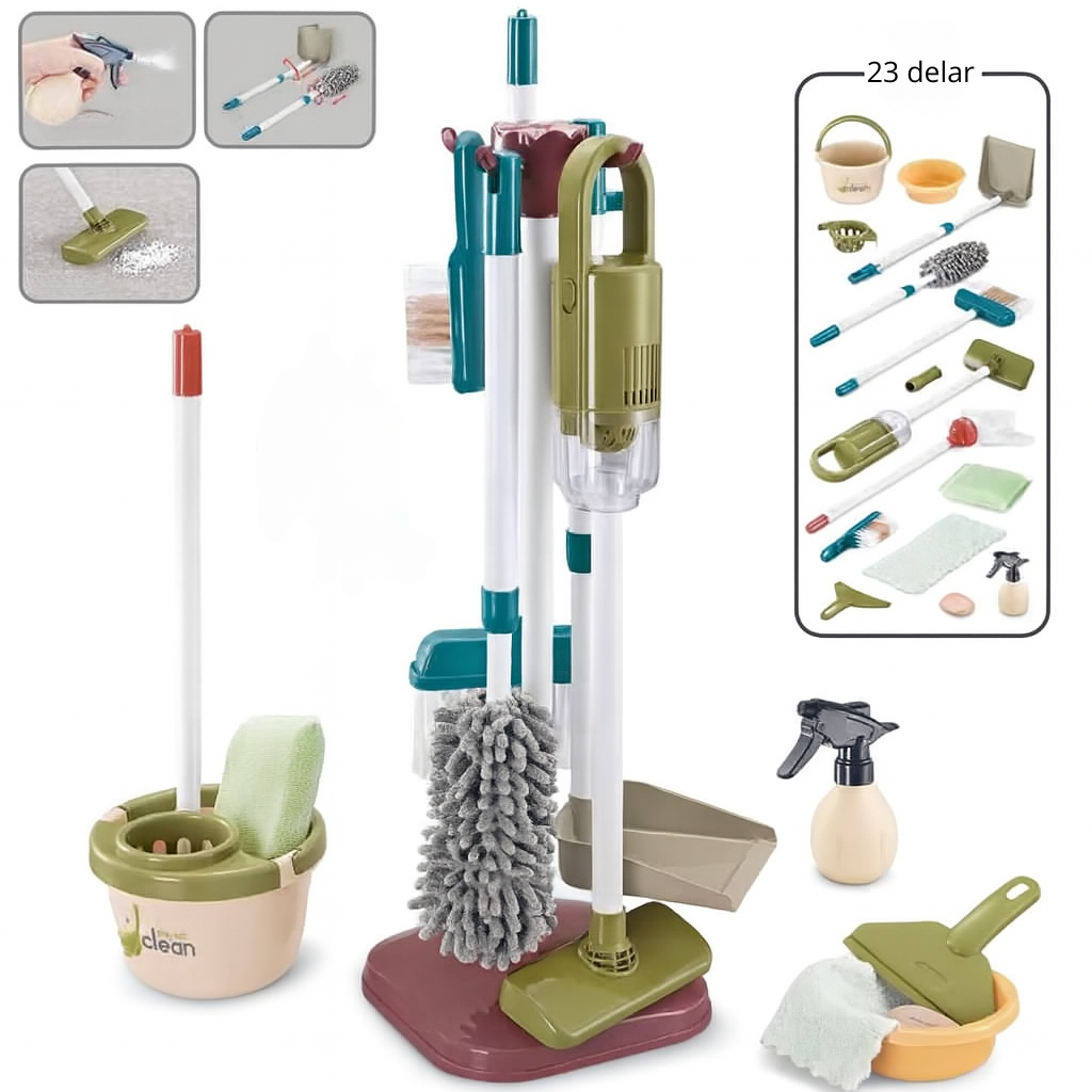 Detta roliga städset för barn är en perfekt leksak för att inspirera till lärande genom lek. Städleksaken innehåller flera realistiska delar och är utformad för att hjälpa barn att utveckla motorik, ansvarskänsla och en känsla för ordning och hygien på ett lekfullt sätt.