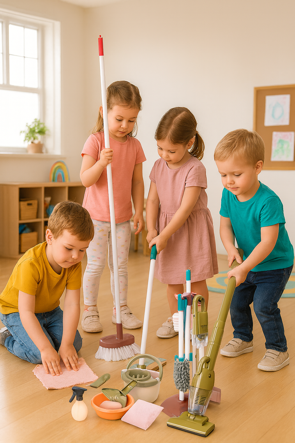 Genom att leka städlek där barnet härmar vuxnas sysslor, lär sig barnet att uppskatta ordning, rengöring och att ta hand om sitt rum. Det stärker deras självständighet och skapar goda hygienvanor tidigt.